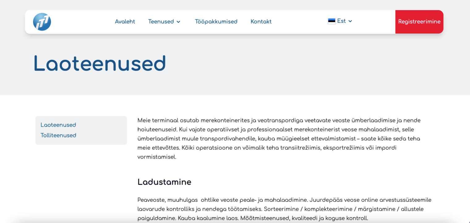 Website for Cargo handling terminal ITT Baltic. Services functionality. Multistep form.