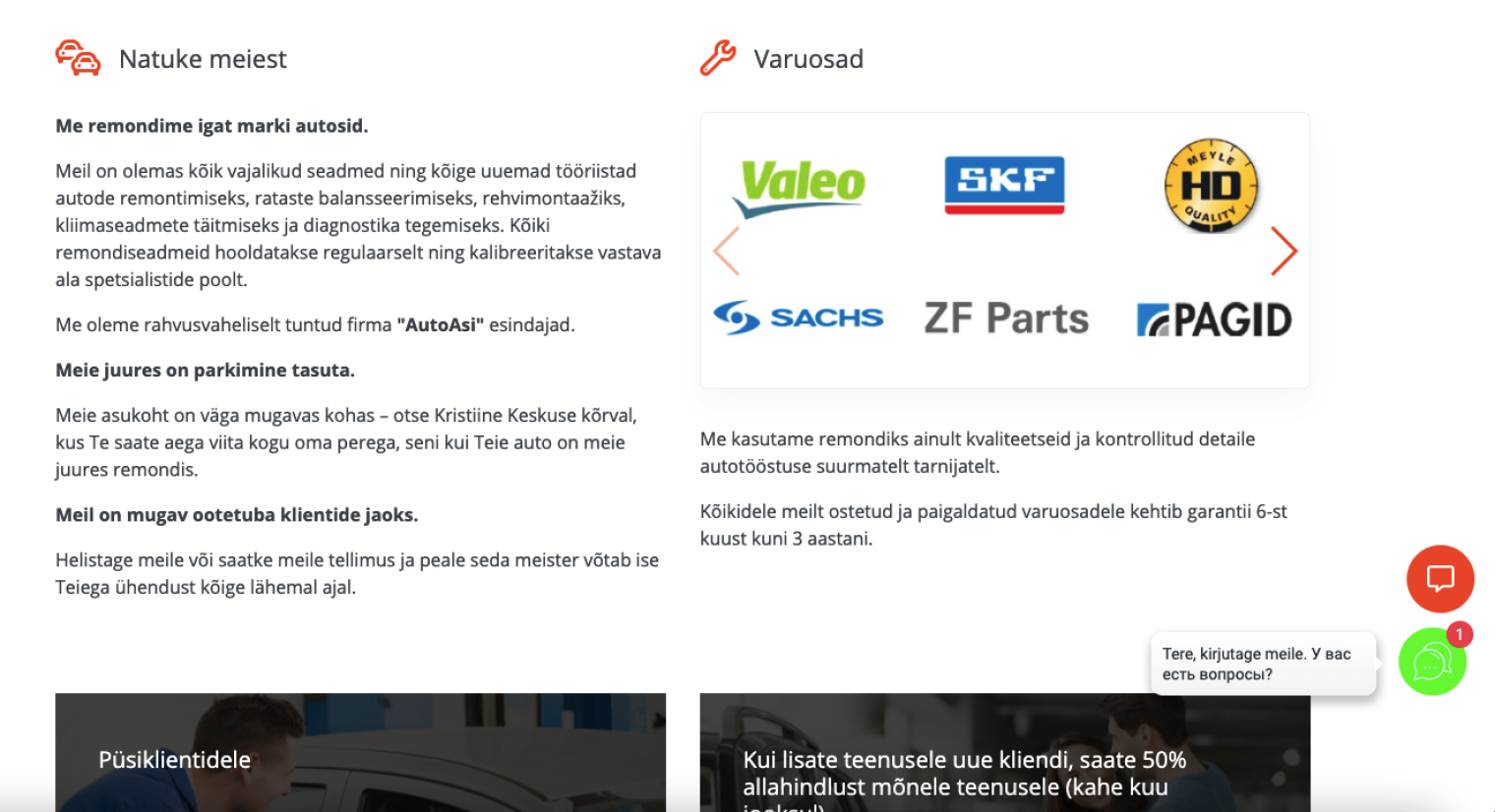Autohooldus veebileht. Teenuste juhtimine funktsionaal.