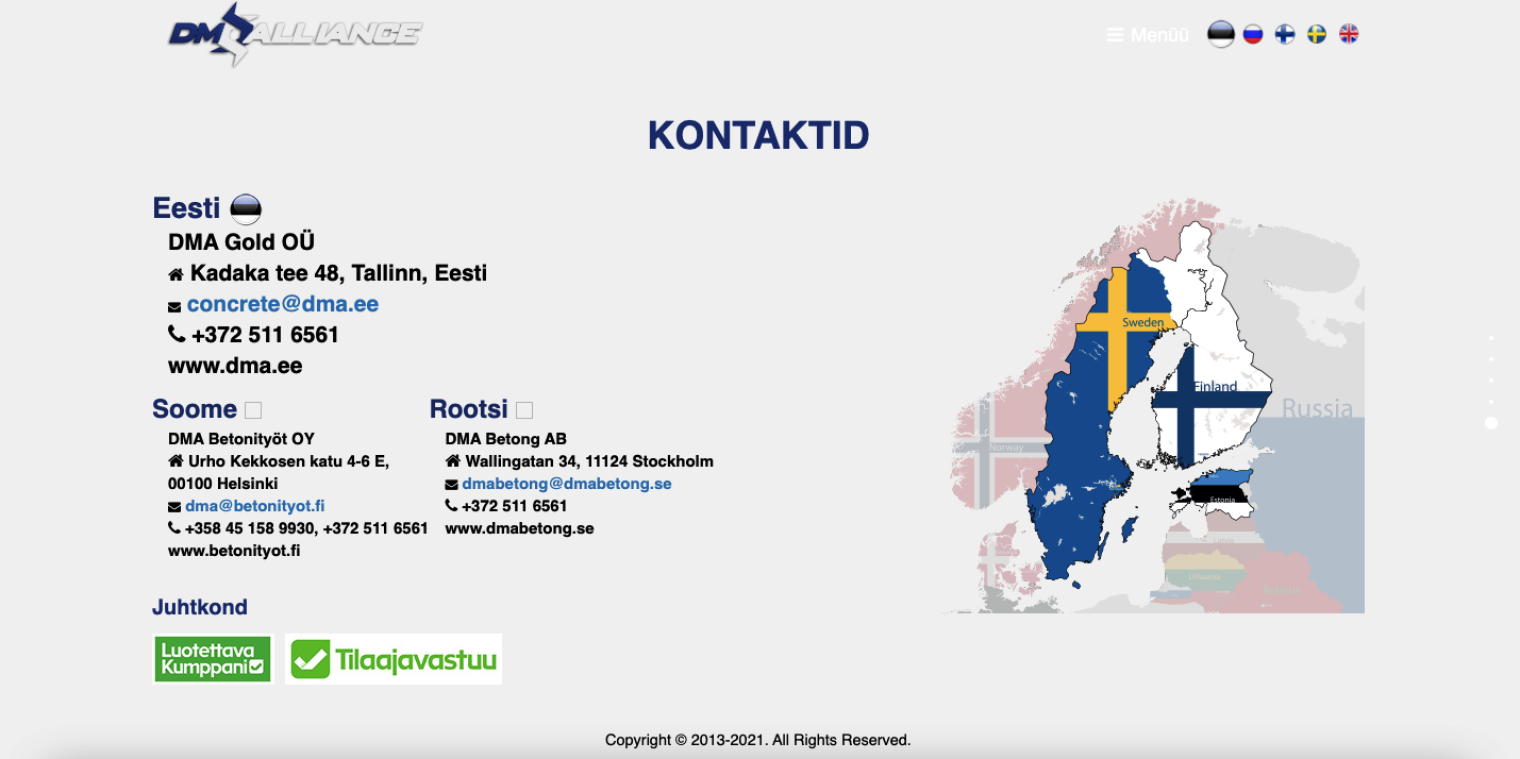 DMA pakub kõiki betooni- ja monteerimistöid erinevat tüüpi ehitiste püstitamisel baltimaades ja skandinaavias. Veebilehel on vōimalus mugavalt objekte lisada.